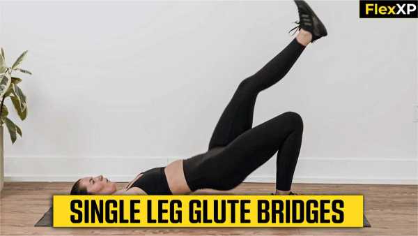 +Single Leg Glute Bridges target the glutes and hamstrings, improving lower body strength and hip stability.